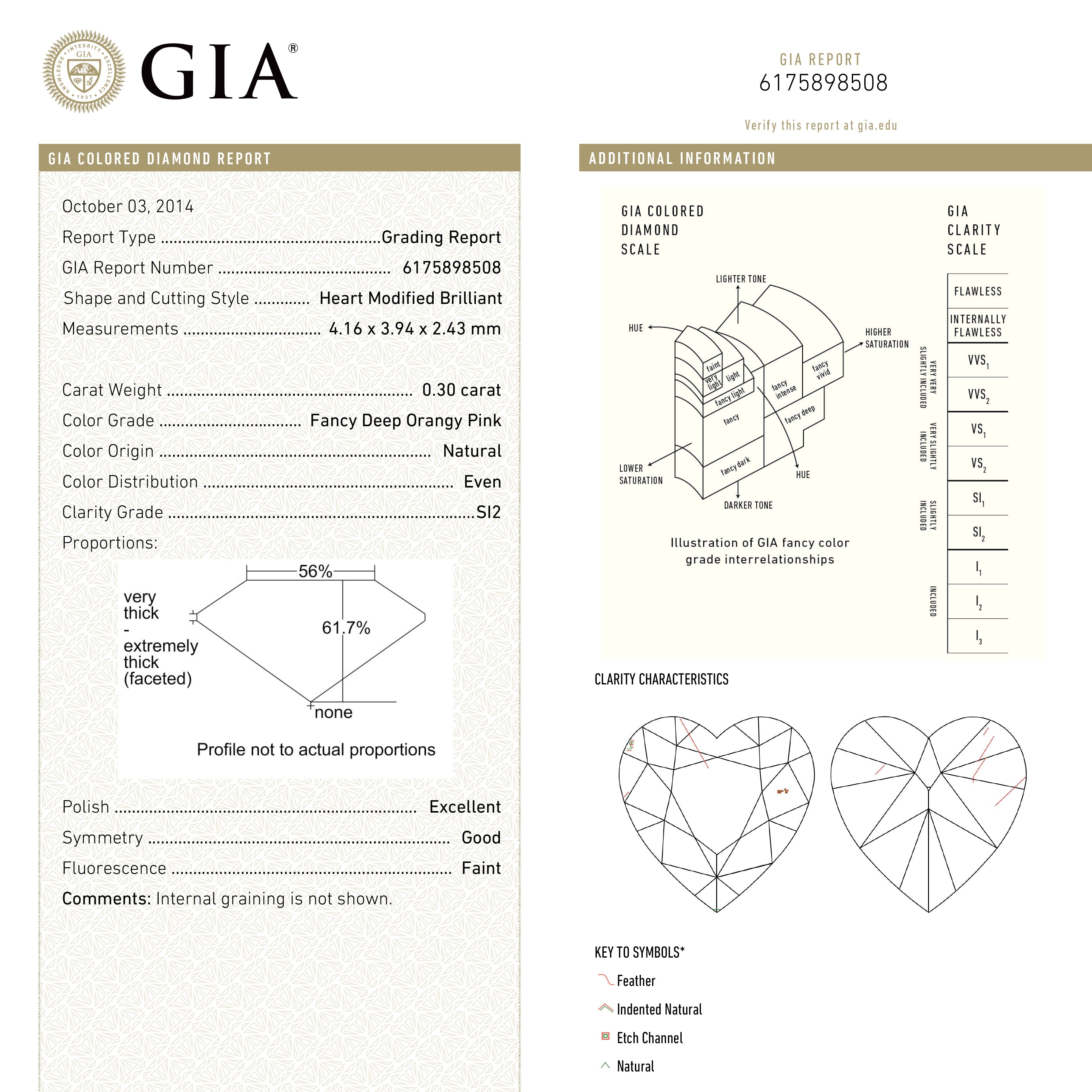 GIA Fancy Deep Orangy Pink Heart Brilliant