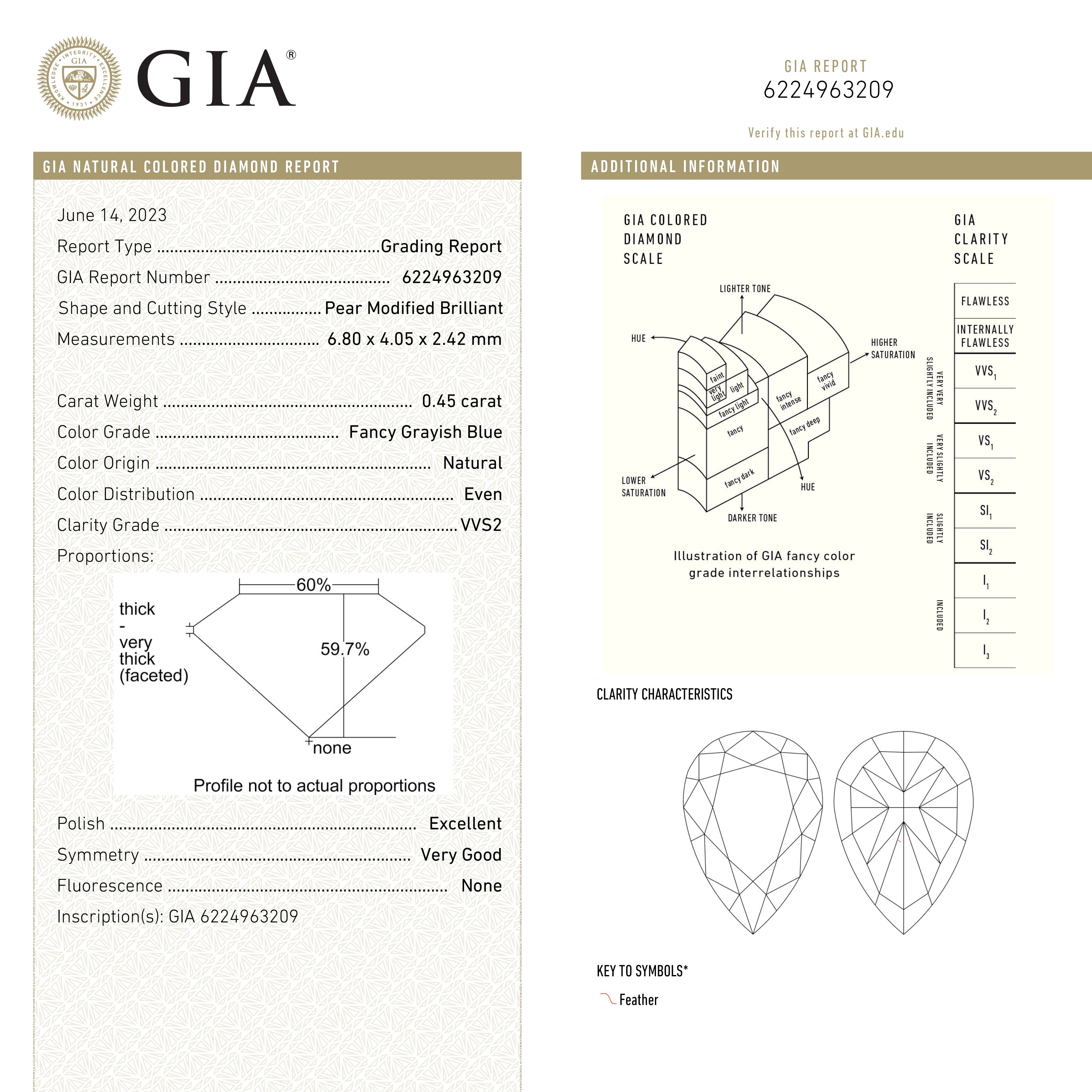 GIA Fancy Greyish Blue Pear Brilliant