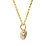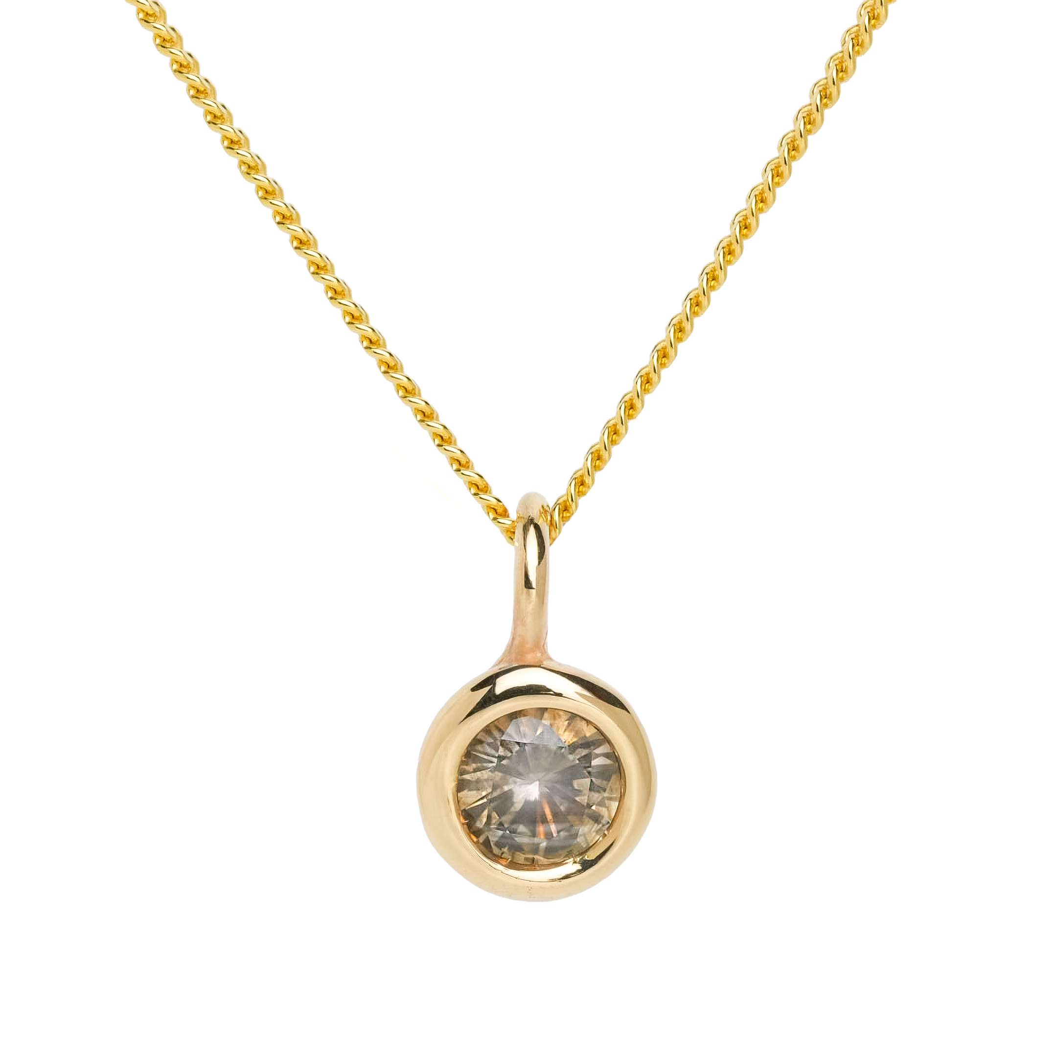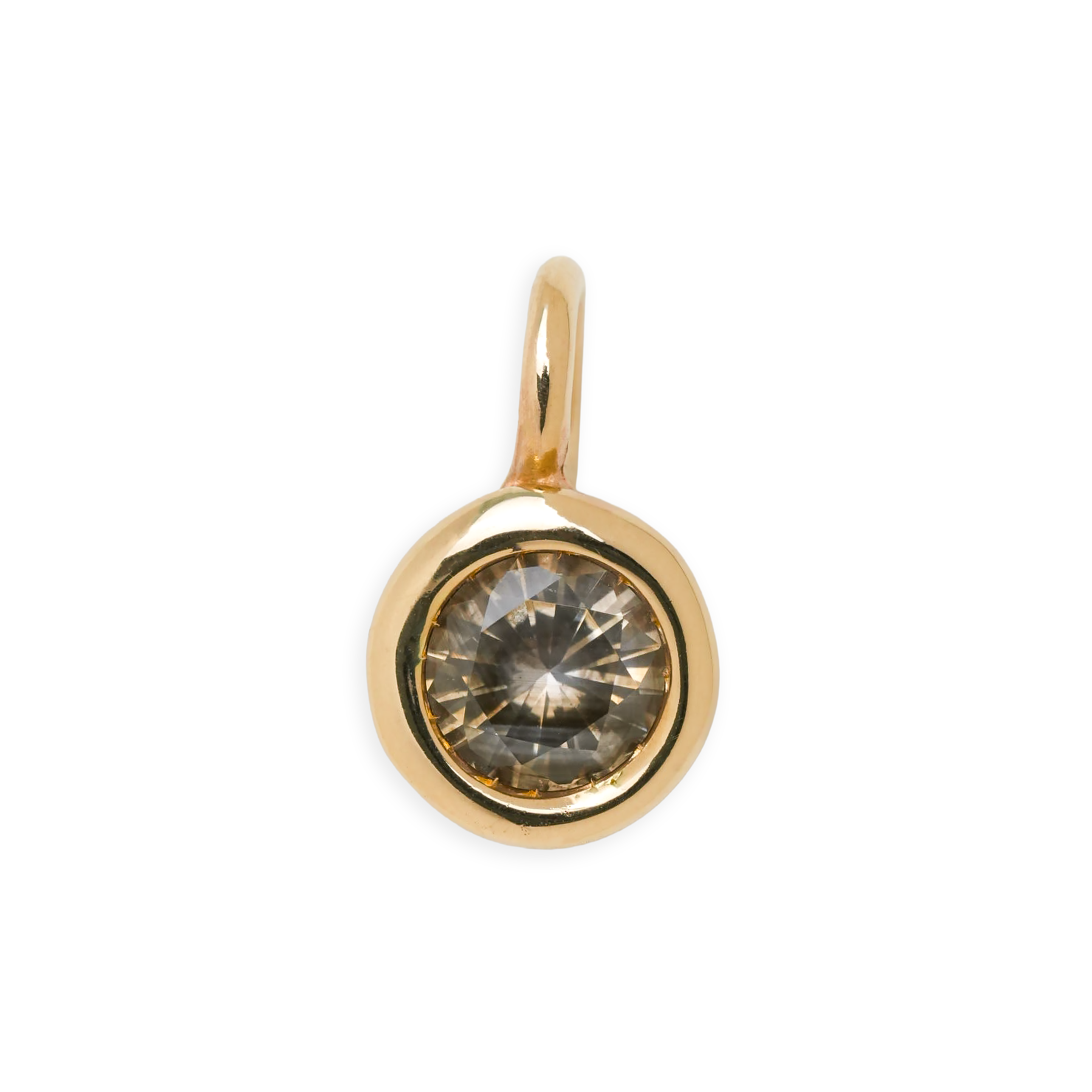 1.1ct grey round sapphire set in a hand carved solid domed 14k yellow gold setting. Adding a little sparkle to your stack.