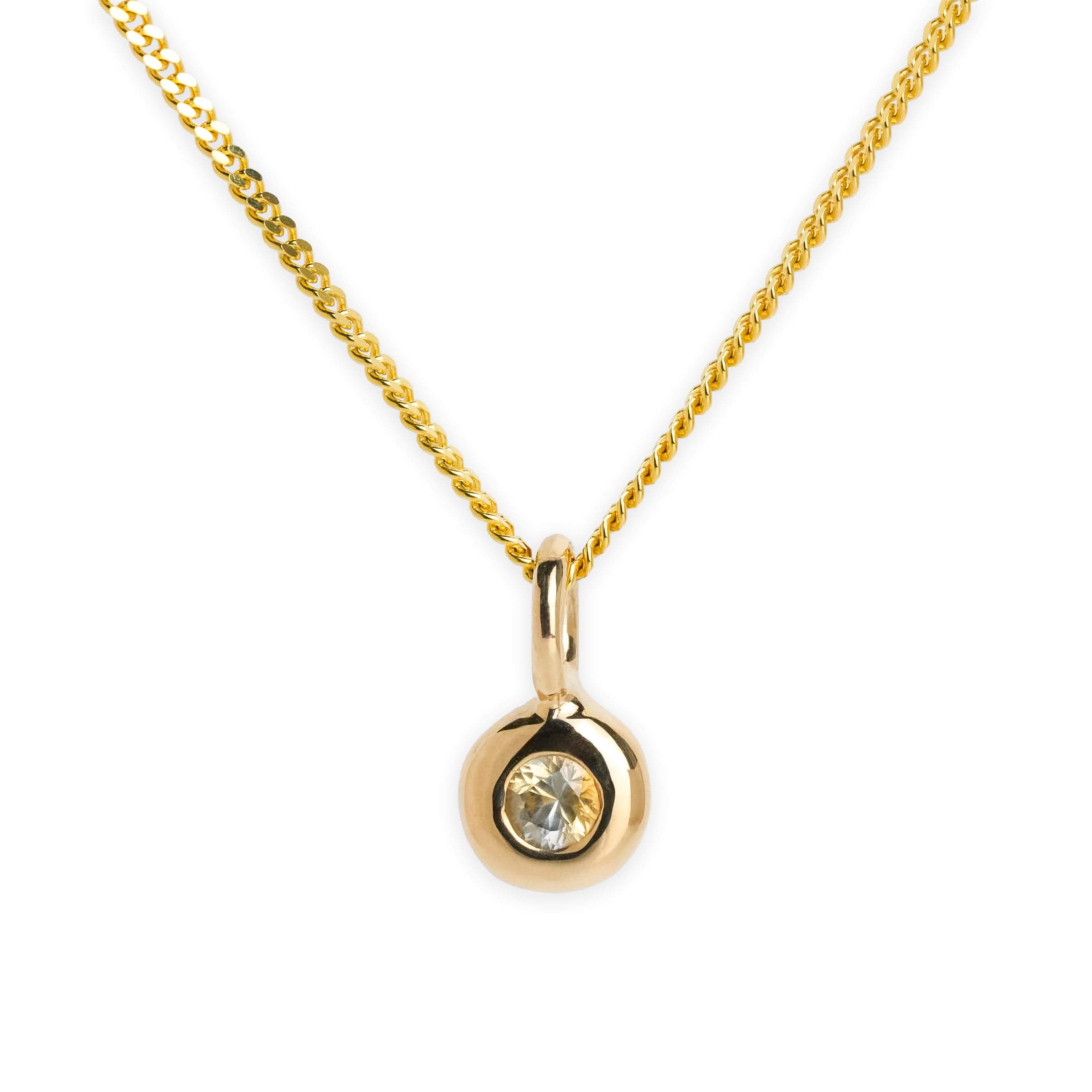 0.25ct light yellow & blue sapphire set in a hand carved solid domed 14k yellow gold setting. Adding a little sparkle to your stack.