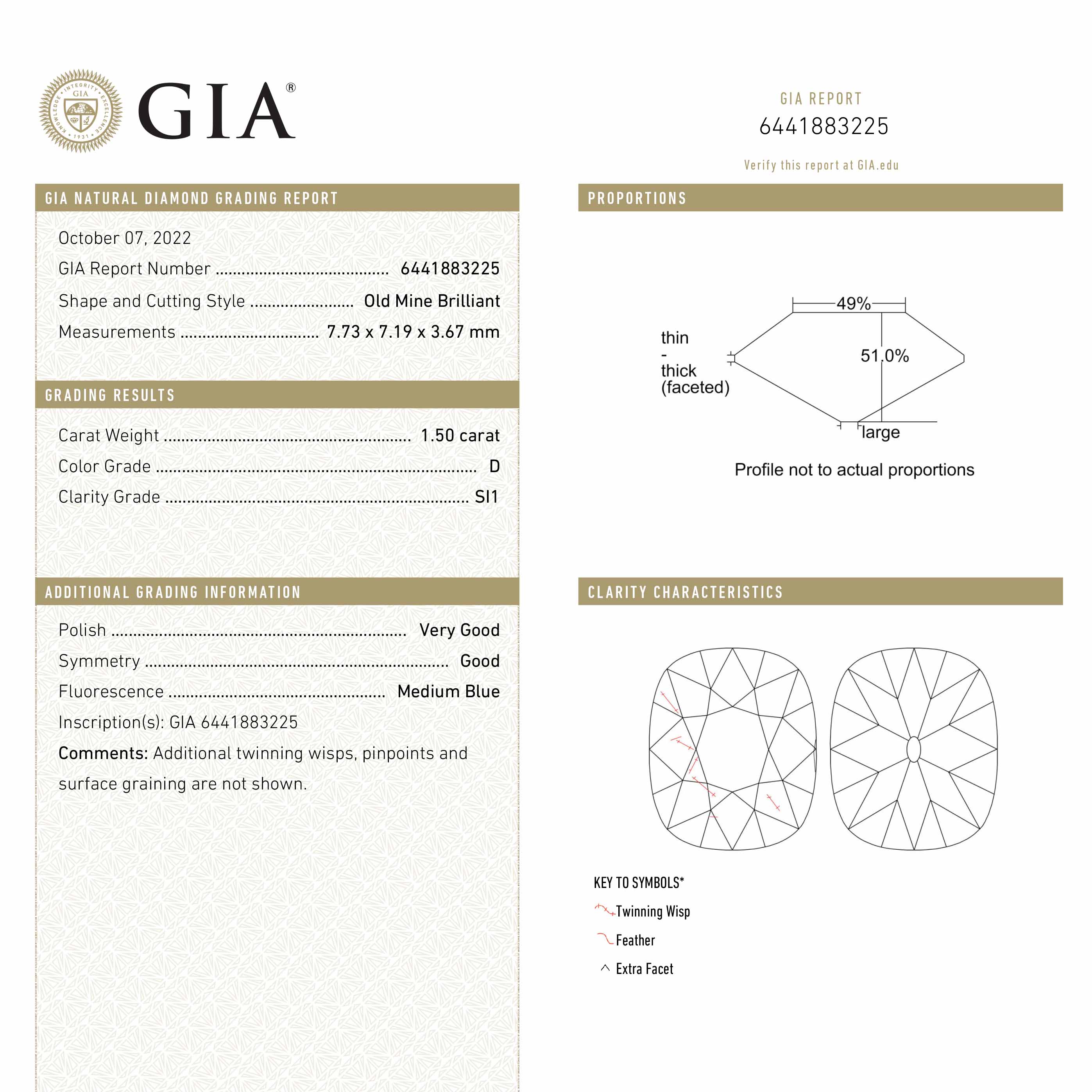 1.50ct 7.73x7.19x3.67mm GIA SI1 D Modern Antique Old Mine Cut 25706-01