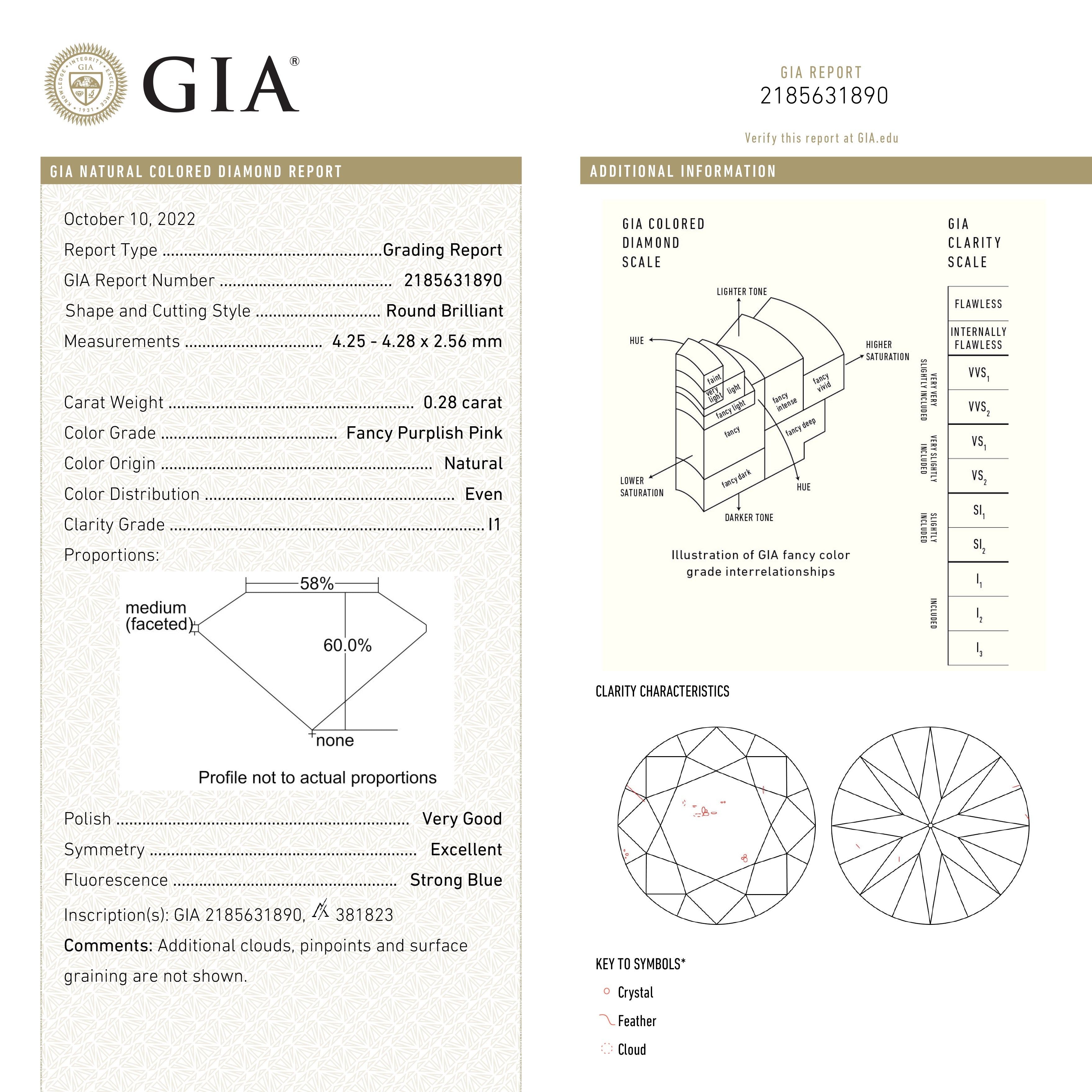 0.28ct 4.28x4.25x2.56mm GIA I1 Fancy Purplish Pink Round Brilliant 24167-01