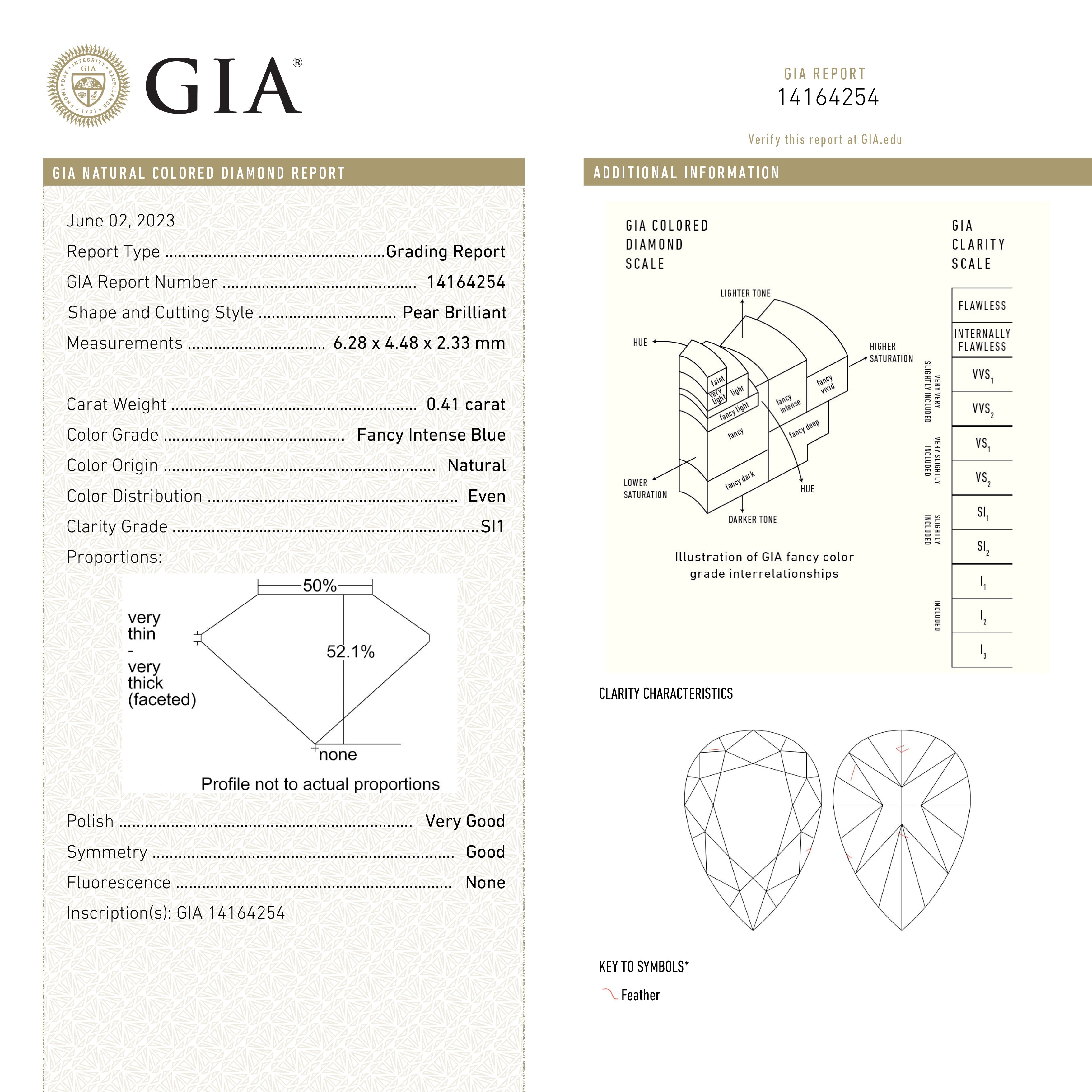 0.41ct 6.28x4.48x2.33mm GIA SI1 Fancy Intense Blue Pear Brilliant 24136-01